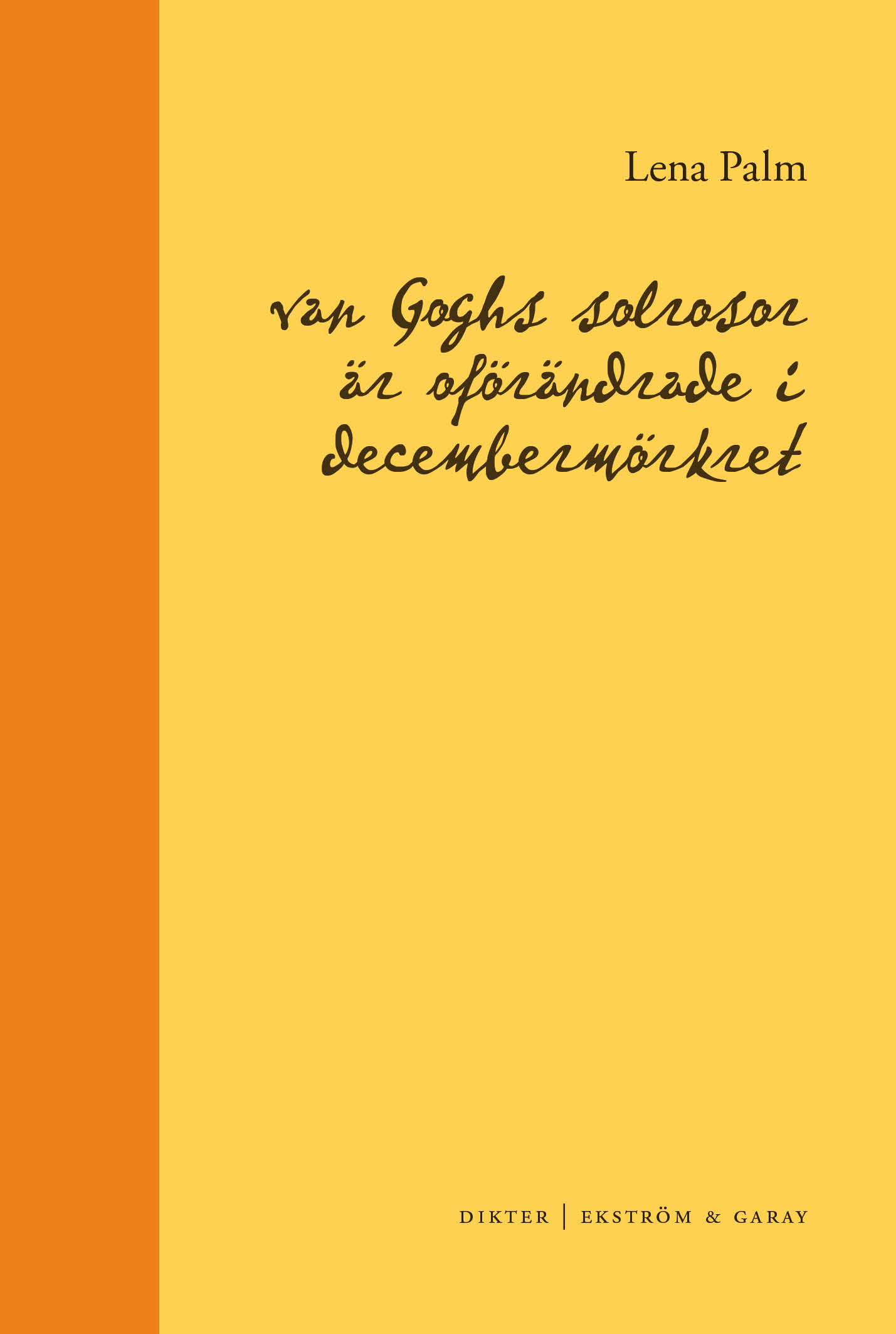 Hon debuterade som författare med diktsamlingen van Goghs solrosor är oförändrade i decembermörkret (2024).